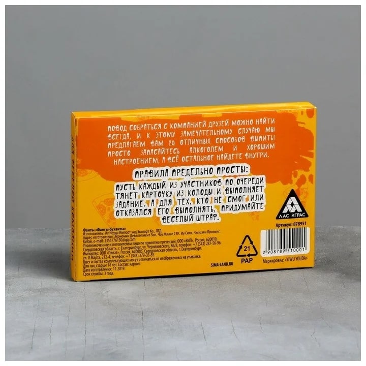 Купить игра для компании "фанты буханты" 20 карт от 100 руб. с доставкой до пункта выдачи в Весьегонске. Интернет магазин ДекаМаркет. Оплата при получении.